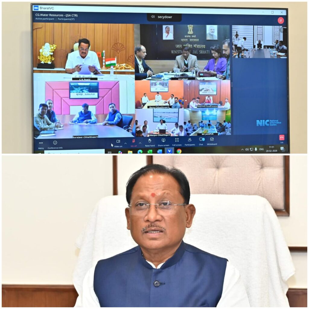 रायपुर 20 फरवरी 2026/मुख्यमंत्री श्री विष्णु देव साय और केंद्रीय जल शक्ति मंत्री श्री सी. आर. पाटिल की संयुक्त अध्यक्षता में आज नवा रायपुर स्थित मुख्यमंत्री निवास कार्यालय में आयोजित बैठक में प्रदेश में “जल संचय-जन भागीदारी 2.0” अभियान के क्रियान्वयन की गहन समीक्षा की गई। केंद्रीय मंत्री श्री पाटिल इस बैठक में वर्चुअली शामिल हुए और बैठक को संबोधित किया। इस दौरान बिलासपुर, दुर्ग और सूरजपुर जिले के कलेक्टरों ने अपने-अपने जिलों में अभियान के अंतर्गत संचालित कार्यों और गतिविधियों की विस्तृत जानकारी प्रस्तुत की।