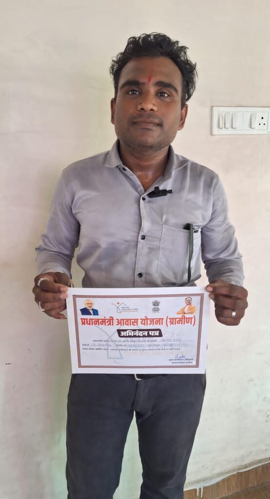 रविराज महंत की माताजी ने पंचायत में आवास योजना के तहत आवेदन किया था। शासन की जनकल्याणकारी योजना के अंतर्गत उनका आवेदन स्वीकृत हुआ और महज चार से पांच महीनों के भीतर आवास का निर्माण पूर्ण कर लिया गया। अब परिवार को सुरक्षित और सम्मानजनक जीवन जीने के लिए पक्का घर मिल चुका है। आज खरसिया में आयोजित जिला स्तरीय जनसमस्या निवारण शिविर में रविराज महंत को स्थानीय जनप्रतिनिधियों द्वारा अभिनंदन पत्र प्रदान कर सम्मानित किया गया तथा उन्हें उनके नए आवास की चाबी भी सौंपी गई। इस अवसर पर उनके चेहरे में खुशी साफ झलक रही थी। रविराज महंत ने कहा कि “हम जैसे गरीब परिवार के लिए पक्का घर एक सपना था, जिसे शासन-प्रशासन ने पूरा कर दिया। इसके लिए मैं शासन और प्रशासन का हृदय से धन्यवाद करता हूं।