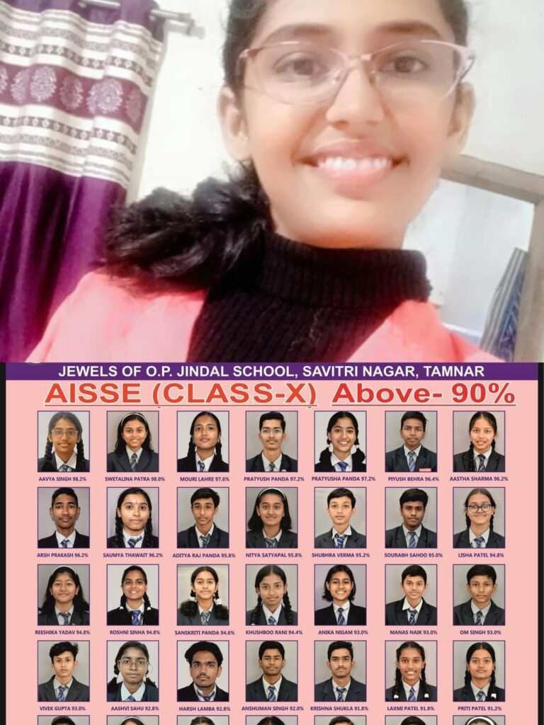 ओपी जिंदल स्कूल, उर्जानगर की मेधावी छात्रा आव्या सिंह ने अपनी मेहनत, अनुशासन, लगन और निरंतर अध्ययन के बल पर उत्कृष्ट सफलता हासिल की है। उन्होंने अंग्रेजी में 92, हिंदी में 96, गणित में 99, विज्ञान में 98 तथा सामाजिक विज्ञान में 98 अंक प्राप्त कर अपनी शैक्षणिक प्रतिभा का शानदार परिचय दिया है। वहीं अतिरिक्त विषय आर्टिफिशियल इंटेलिजेंस में उन्होंने शत-प्रतिशत 100 अंक प्राप्त कर एक नई मिसाल कायम की है।