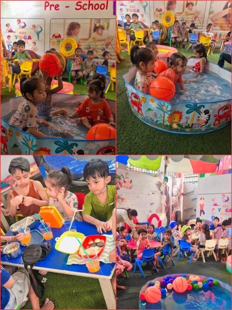 पूल पार्टी के दौरान पानी से लबालब भरे पूल में जब रंग-बिरंगी फुटबॉल और छोटी-छोटी कलरफुल गेंदें तैरने लगीं, तो बच्चों की खुशी का ठिकाना नहीं रहा। बॉल्स को पकड़ने के लिए बच्चे पानी में छपाक से कूद रहे थे और एक-दूसरे की ओर गेंद उछालकर ठहाके लगा रहे थे। कोई बच्चा अपनी ‘स्विमिंग रिंग’ के सहारे फुटबॉल को किक मारने की कोशिश कर रहा था, तो कोई अपने छोटे हाथों से साथियों पर पानी की फुहारें उड़ाकर उन्हें भिगोने के खेल में मगन था। इन बेफिक्र अठखेलियों से स्कूल का कोना-कोना बच्चों की मुस्कान से गुलजार हो उठा।