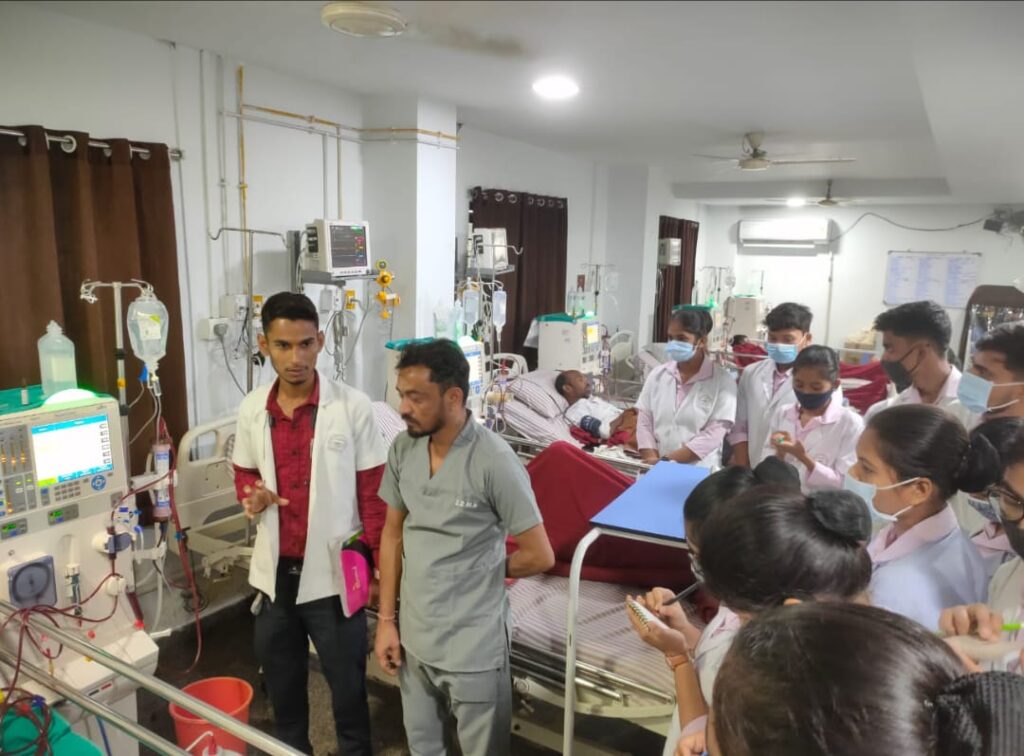 12 March को करियर कॉलेज ऑफ़ नर्सिंग रायगढ़ के BSc 3rd Semister के छात्र एवम छात्राओं ने Parental Hospital Shri Balaji Metro Care Hospital Raigarh में Cilinal duty के दौरान डायलिसिस संबंधित संपूर्ण जानकारी प्राप्त की l बच्चों को गाइड कर रहे थे कॉलेज के टीचर प्रिंस चौधरी सर।