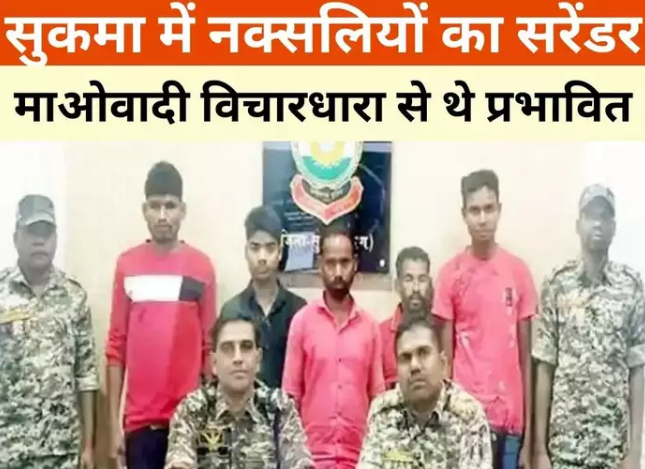 छत्तीसगढ़ के नक्सल प्रभावित सुकमा जिले में पुलिस को बड़ी सफलता मिली है। शुक्रवार को सुकमा में 5 नक्सलियों ने प्रशासन की नीतियों से प्रभावित होकर सरेंडर कर दिया। नक्सलियों के सरेंडर की जानकारी देते हुए पुलिस अधिकारियों ने बताया कि आत्मसमर्पण करने वाले नक्सलियों में 3 नक्सली पोल्मपल्ली क्षेत्र में एक्टिव थे तो वहीं 2 नक्सली किस्टाराम थाना क्षेत्र में सक्रिय थे। अधिकारियों ने बताया कि सरकार द्वारा चलाए जा रहे ‘छत्तीसगढ़ नक्सलवाद उन्मूलन’ और सुकमा पुलिस की नीति के कारण नक्सलियों ने सरेंडर किया है। सुकमा पुलिस पूना नर्कोम अभियान चला रही है। आपको बता दें कि सरकार द्वारा चलाई जा रही ‘छत्तीसगढ़ नक्सलवाद उन्मूलन’ नीति के तहत सरेंडर करने वाले नक्सलियों को 25 हजार सहायता राशि दी जाती है। साथ ही कई अन्य सुविधाएं भी प्रदान की जाती हैं। नक्सलियों ने कहा कि वह माओवादियों की विचारधारा को छोड़कर सामान्य जिंदगी जीना चाहते हैं।