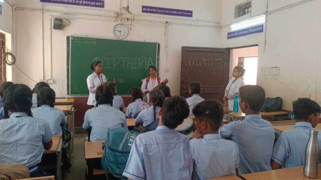 करियर कॉलेज ऑफ़ नर्सिंग में आज टीचर इंचार्ज सुनंदा चौहान की तरफ से बच्चों को डिप्थीरिया के बारे में जानकारी दी गई।
