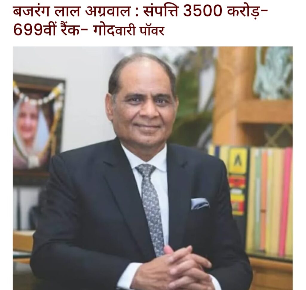 चौथे नंबर पर बजरंग लाल अग्रवाल जी हैं जिनकी कंपनी गोदावरी पावर पावर सेक्टर में काम करती है
