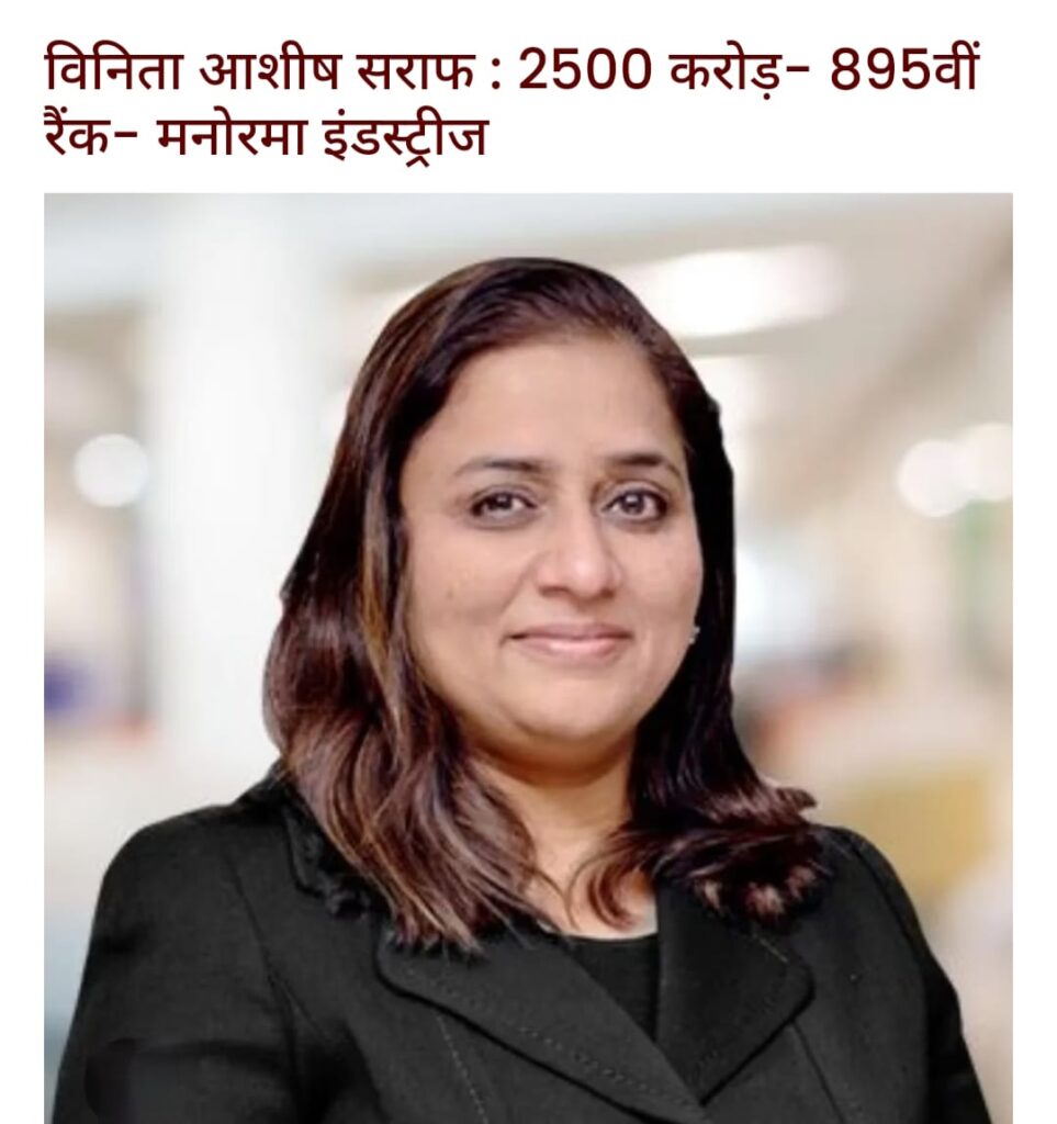 पांचवें नंबर पर हैं विनीता आशीष शरफ जी जिनकी कंपनी शारदा एनर्जी एंड मिनरल्स है जो की फूड प्रोसेसिंग सेक्टर में काम करती है ।
