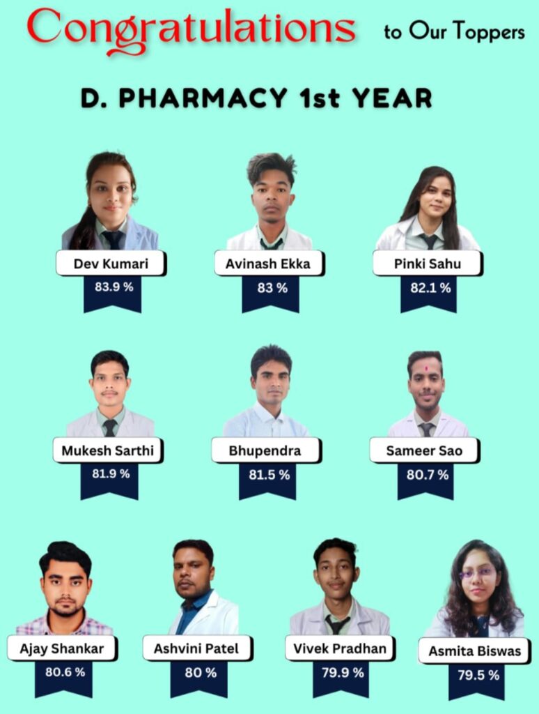 रायगढ़ – कैरियर एडुकॉम एकेडेमी रायपुर के द्वारा संचालित कैरि TVयर कॉलेज आफ फार्मेसी ऑफ़ फार्मेसी चिटकाकानी पोस्ट जुड़ा जिला रायगढ़ छग के प्रथम सत्र के प्रथम बैच के छब्बीस छात्र – छात्रों का प्रथम श्रेणी में उत्तीर्ण होना निश्चय ही एक नया कीर्तिमान को प्रदर्शित करती है। विद्यार्थियों के बेहतर उत्कृष्ट परीक्षा परिणाम को लेकर श्री मुकेश अग्रवाल डायरेक्टर ने सभी स्टॉफ को बधाई देते हुए आगामी वर्षों में भी और बेहतर परिणाम आने की शुभकामनाएं दिए। वही कैरियर कॉलेज ऑफ़ फार्मेसी के प्राचार्य श्री शंभु खम्हारी ने विद्यार्थियों के मेहनत और लगन के साथ साथ स्टाफ के मार्गदर्शन से अच्छे परिणाम मिलने को हर्ष जाहिर किए। पचहत्तर प्रतिशत से अधिक प्राप्त करने वाले विद्यार्थियों की सूची में देवकुमारी, अविनाश एक्का, पिंकी साहू, मुकेश, भूपेंद्र, समीर साव, अजय शंकर मिश्रा, अश्विनी पटेल, विवेक प्रधान, अश्मिता, जानकीकुमारी, दिव्या प्रधान, कमल कुमार, चंद्रपाल निराला, जयकुमार यादव, खीरकुमारी, तुलसी साव, तेजेश्वर साहू, विवेक अगस्ती, देवदत्त साहू, खिलेंद्र डनसेना, तानसिंह,अमित कुमार साहू, दुलेश्वरी यादव, शारदा अग्रवाल, जयकुमार भारती का नाम रहा। सभी सफल हुए विद्यार्थियों ने इसका श्रेय अपने गुरुजन एवं माता पिता को दिए । वही स्टाफ की ओर से श्रीमती गिरिजा गुप्ता, दीपक प्रधान, तनुश्री रॉय, सचिन बिस्वाल, दिनेश देहरी, सीमा गुप्ता, महक पांडे, अभिषेक पटेल का मार्गदर्शन रहा।