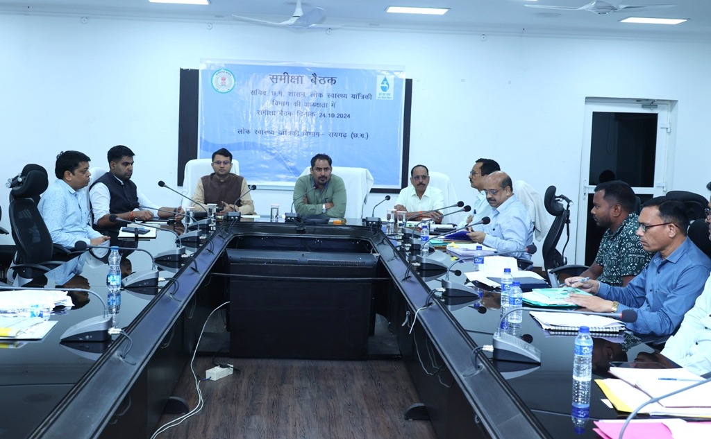 रायगढ़, 24 अक्टूबर 2024/ लोक स्वास्थ्य यांत्रिकी विभाग के सचिव श्री मोहम्मद कैसर अब्दुलहक ने आज कलेक्ट्रेट सभाकक्ष में जिले में चल रहे जल जीवन मिशन की कार्यों की विस्तृत समीक्षा की। उन्होंने कहां कि शासन के मंशानुरूप जल जीवन मिशन के तहत ग्रामीण क्षेत्रों तक स्वच्छ पेयजल पहुंचाने की योजना है। इसमें गुणवत्ता के साथ किसी प्रकार की समझौता नहीं की जाएगी। सभी विभागीय अधिकारी एवं कॉन्ट्रेक्टर इसका विशेष ध्यान रखें। बैठक में कलेक्टर श्री कार्तिकेया गोयल एवं सीईओ जिला पंचायत श्री जितेन्द्र यादव उपस्थित रहे।