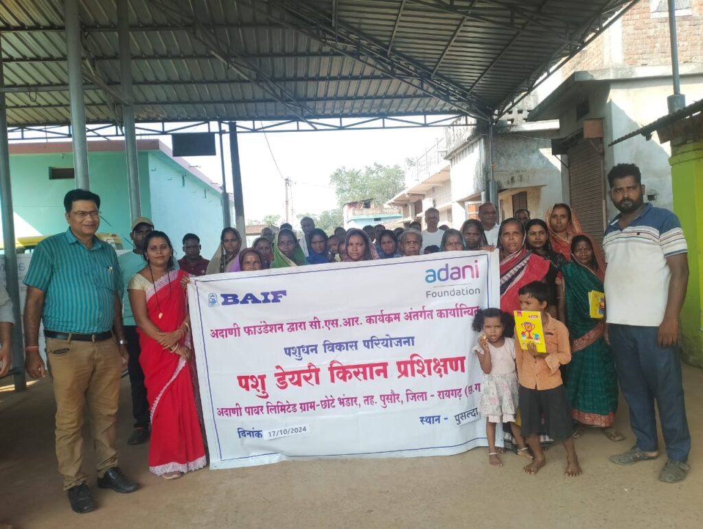 किसानों को आत्मनिर्भर बनाने के प्रयासों के तहत अक्टूबर में, अदाणी फाउंडेशन ने पुसौर विकासखंड के गांवों में विभिन्न पशु स्वास्थ्य जांच और उपचार शिविरों के साथ-साथ डेयरी प्रशिक्षण कार्यक्रमों का आयोजन किया। किसानों को उन्नत नस्लों के पशुओं के जन्म और दुग्ध उत्पादन बढ़ाने के लिए भी प्रशिक्षित भी किया गया। अदाणी पॉवर लिमिटेड, रायगढ़ के सामाजिक सरोकारों के तहत अदाणी फाउंडेशन ने पशुधन विकास के क्षेत्र में एक महत्वपूर्ण कदम उठाया है।