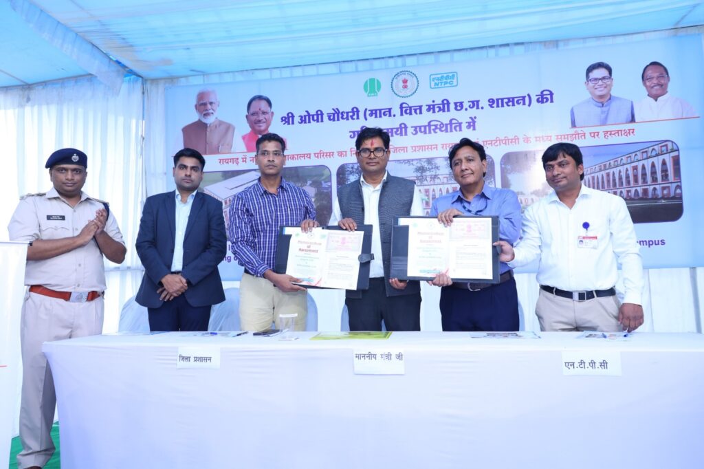 रायगढ़, 27 अक्टूबर 2024/ वित्त मंत्री श्री ओ.पी.चौधरी की उपस्थिति में रायगढ़ में नालंदा परिसर के निर्माण के लिए रायगढ़ नगर निगम और एनटीपीसी के बीच 42.56 करोड़ के मेमोरेंडम ऑफ एग्रीमेंट पर हस्ताक्षर किया गया। वित्त मंत्री श्री ओ.पी.चौधरी ने कहा कि यह नालंदा परिसर हमारी नयी पीढ़ी के विकास और रायगढ़ को एजुकेशन हब बनाने में मील का पत्थर साबित होगी।