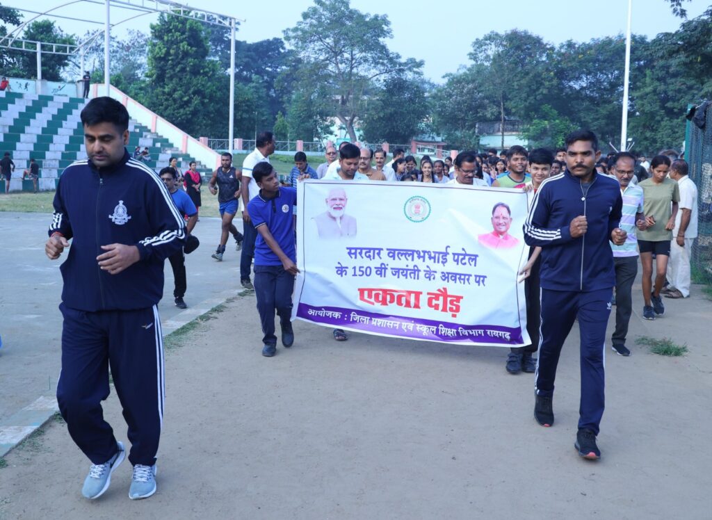 रायगढ़, 29 अक्टूबर 2024/ मुख्यमंत्री श्री विष्णु देव साय के नेतृत्व में 29 अक्टूबर 2024 को सरदार वल्लभभाई पटेल जी की 150 वीं जयंती के अवसर पर रायगढ़ स्टेडियम में ‘रन फॉर यूनिटी’ का आयोजन जिला पंचायत सीईओ श्री जितेन्द्र यादव की अगुआई में किया गया।