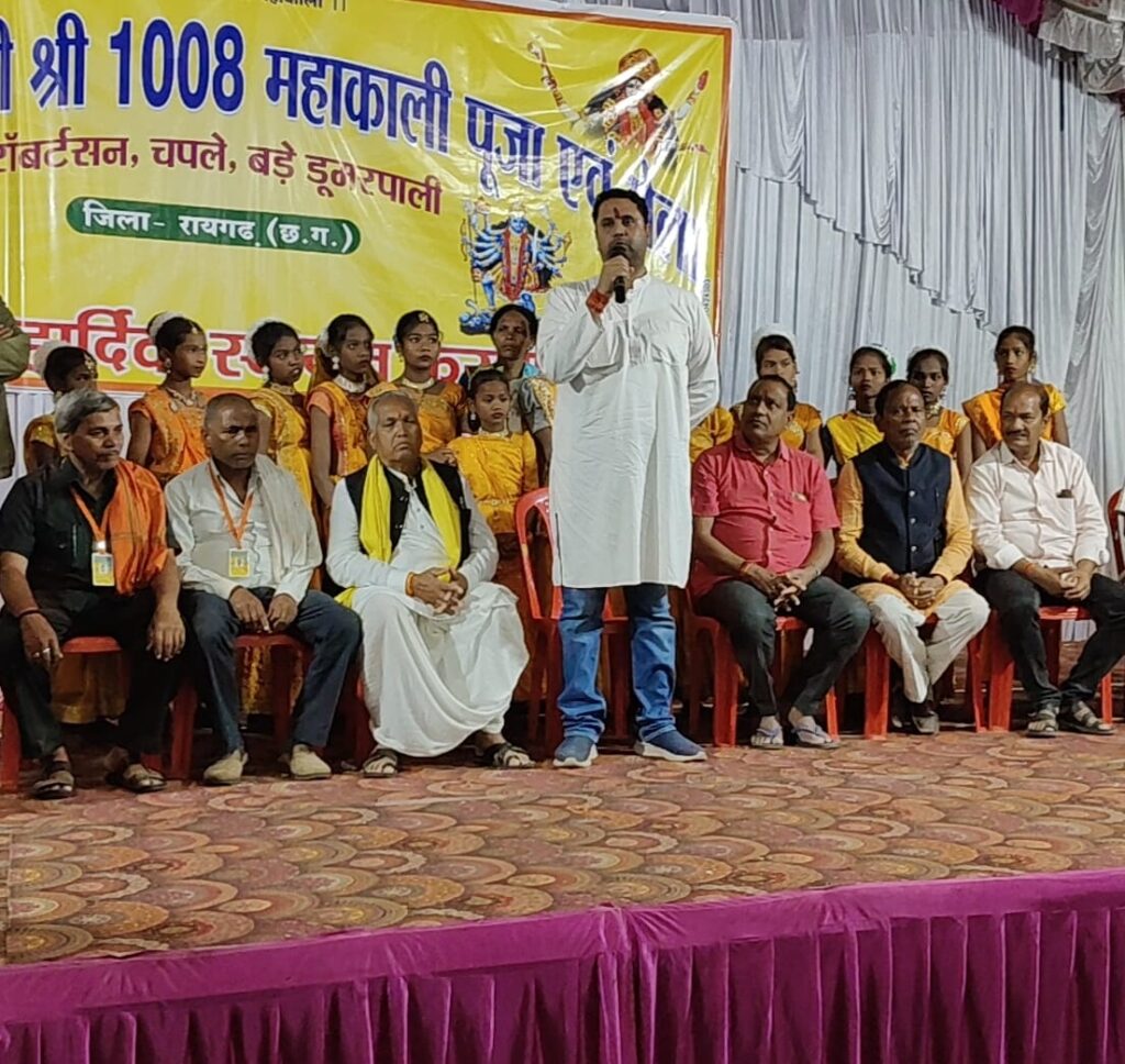 रायगढ़। जिले के खरसिया क्षेत्र में “श्री श्री 1008 महाकाली पूजा एवं भव्य मेला” का आयोजन एक बार फिर आस्था और सांस्कृतिक समृद्धि का प्रतीक बनकर सामने आया। रविवार, 03 नवंबर को खरसिया के रॉबर्टसन, चपले और बड़े डूमरपाली में आयोजित इस मेले में छत्तीसगढ़ के पूर्व मंत्री एवं खरसिया विधायक उमेश पटेल भी शामिल हुए और मां काली की पूजा-अर्चना कर क्षेत्रवासियों के सुख, समृद्धि, और खुशहाली की प्रार्थना की। इस दौरान उमेश पटेल ने आयोजन समिति को इस महत्वपूर्ण आयोजन को निरंतर आगे बढ़ाने के लिए शुभकामनाएं एवं बधाई दी। उन्होंने कहा, “ग्राम चपले की पावन भूमि पर महाकाली पूजा एवं मेला पिछले कई वर्षों से मनाया जा रहा है और प्रत्येक वर्ष इसकी भव्यता में इजाफा हो रहा है। इस आयोजन से चपले गांव की पहचान और गौरव बढ़ा है, जो हम सभी के लिए गर्व की बात है।”