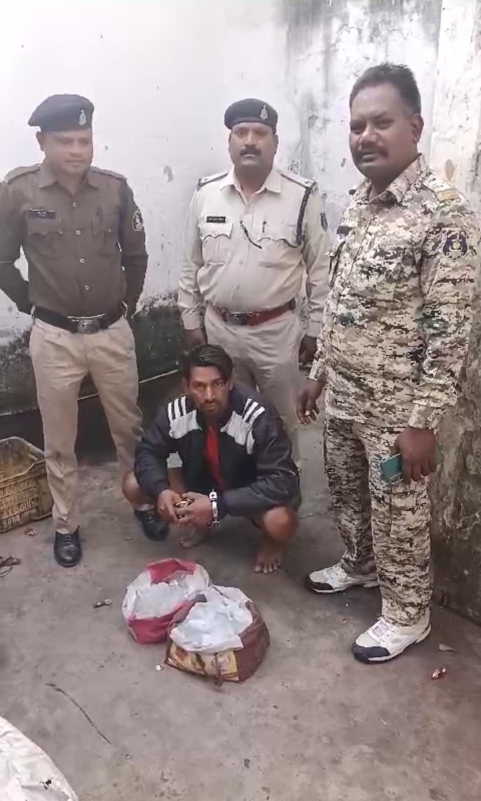रायगढ़* । पुलिस अधीक्षक श्री दिव्यांग कुमार पटेल के निर्देशन पर अवैध शराब के खिलाफ जिले में लगातार अभियान चलाया जा रहा है। इसी क्रम में, कल 15 नवंबर 2024 को, जूटमिल पुलिस ने निरीक्षक मोहन भारद्वाज के नेतृत्व में वार्ड क्र 34 अम्बेडकर नगर में शराब रेड कार्रवाई की गई । मुखबिर से प्राप्त सटीक सूचना के आधार पर, टीआई जूटमिल मोहन भारद्वाज के साथ पुलिस टीम ने काशीराम चौक, अंबेडकर नगर में केशव प्रसाद बंजारे के मकान पर छापा मारा। छानबीन के दौरान मकान के आंगन में छिपाकर रखी गई महुआ शराब बरामद की गई। आरोपी केशव प्रसाद बंजारे (39 वर्ष) ने पूछताछ में अवैध शराब बिक्री के लिए रखने की बात स्वीकार की। पुलिस ने आरोपी के कब्जे से 54 पारदर्शी पन्नी पाउच में पैकेट में कुल *9.720 लीटर महुआ शराब* जब्त की, जिसकी अनुमानित कीमत 1450 रुपये है। आरोपी के खिलाफ थाना जूटमिल में धारा 34(2), 59(क) आबकारी अधिनियम के तहत मामला दर्ज किया गया है। जूटमिल थाना प्रभारी निरीक्षक मोहन भारद्वाज के नेतृत्व में अवैध शराब बिक्री पर सख्त नजर रखी जा रही है । आम जनता से अपील की है कि वे अवैध शराब या अन्य आपराधिक गतिविधियों की सूचना तुरंत पुलिस को दें।
