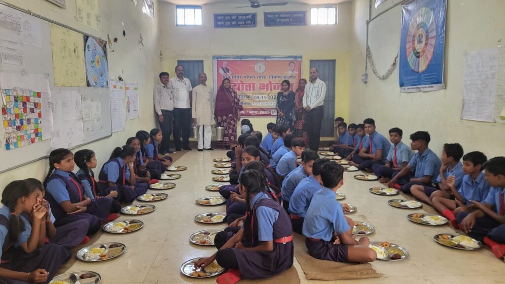 रायगढ़, छत्तीसगढ़ शासन स्कूल शिक्षा विभाग द्वारा समस्त शासकीय एवं अनुदान प्राप्त प्राथमिक एवं माध्यमिक शालाओ में प्रधानमंत्री पोषण शक्ति निर्माण योजना के अंतर्गत समुदाय के सहभागिता एवं भागीदारी को प्रोत्साहित करने के लिए न्यौता भोजन प्रारंभ किया गया है। न्यौता भोजन की प्रमुख अवधारणा प्रधानमंत्री पोषण शक्ति निर्माण योजना के तहत जिले के अध्यनरत प्राथमिक एवं माध्यमिक स्कूलों के छात्र-छात्राओं को अतिरिक्त पोषण आहार में वृद्धि की दृष्टि से न्यौता भोजन आयोजित किया जा रहा है। प्रधानमंत्री पोषण शक्ति योजना के न्यौता भोजन का आशय भोजन दान की प्रकृति को महादान की प्रकृति के रूप में प्रचारित किया जाना है। राज्य शासन के दिशा-निर्देशों का पालन करते हुए विभिन्न सामुदायिक भागीदारी से स्कूलों में विभिन्न अवसरों जैसे त्योहार, विशेष अवसरों जैसे वर्षगांठ, जन्मदिन, विवाह एवं राष्ट्रीय पर्व में भारतीय परंपरा आधारित बड़ी संख्या में लोगों को भोजन समुदाय, शिक्षक के द्वारा कराया जा रहा है। रायगढ़ जिले में राज्य शासन के निर्देशानुसार माह जून से अक्टूबर 2024 तक की स्थिति में रायगढ़ जिले के अंतर्गत 2605 स्कूलों में 92390 बच्चों को न्यौता भोजन खिलाया गया। न्यौता भोजन तीन प्रकार से शालाओं में दिए जाते हैं प्रथम न्यौता भोजन पूर्ण भोजन है, जिसमें स्कूल के सभी कक्षाओं के सभी बच्चों को नियमित मध्यान्ह भोजन के समान या उससे अधिक खाद्य सामग्रियों का वितरण दानदाता द्वारा किया जाता है। द्वितीय प्रकार के न्यौता भोजन को आंशिक पूर्ण भोजन कहा जाता है। जिसके अंतर्गत दानदाता द्वारा किसी कक्षा विशेष के लिए पूर्ण भोजन दिया जाता है । तृतीय प्रकार के न्यौता भोजन में शाला में नियमित मध्यान्ह भोजन दिया जाता है, जिसमें दानदाता द्वारा अतिरिक्त पोषण सामग्री जैसे फल, मिठाई, बिस्कुट हलवा आदि दिया जाता है। रायगढ़ जिले की विशेष पहल कलेक्टर श्री कार्तिकेया गोयल के द्वारा 02 अगस्त 2024 को मध्यान्ह भोजन की जिला स्तरीय विभागीय समिति की बैठक के दौरान मध्यान्ह भोजन की समीक्षा में सभी मध्यान्ह भोजन पकाने वाले स्कूलों को दाल में नियमित रूप से प्रोटीन की मात्रा को और बढ़ाने के लिए मुनगा भाजी को अनिवार्य रूप से शामिल करने हेतु निर्देशित किया गया। जिससे सभी शालाओं में दाल के साथ मुनगा भाजी डालकर पकाया जाकर बच्चों को पूरा पोषक आहार के रूप में भी दिया जा रहा है। न्यौता भोजन को बढ़ावा देने के लिये जिला प्रशासन की ओर से समुदाय के सभी दानदाताओं से अपील की है कि अपने और अपने परिवार के जन्मदिन, वर्षगांठ एवं अन्य त्यौहारी आयोजन के अवसर पर प्राथमिक और माध्यमिक स्तर के स्कूली बच्चों को पूर्ण भोजन के रूप में पौष्टिक और स्वादिष्ट भोजन प