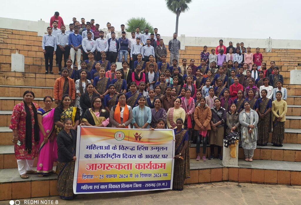 रायगढ़, महिला एवं बाल विकास विभाग अंतर्गत महिलाओं के विरूद्ध हिंसा उन्मूलन का अंतर्राष्ट्रीय दिवस के अवसर पर 10 दिसम्बर तक जागरूकता कार्यक्रम का आयोजन किया जा रहा है। जिसके तहत आज दिल्ली पब्लिक स्कूल रायगढ़ में बालिकाओं एवं महिलाओं को उनके अधिकारों के प्रति सजग होने के लिए कानूनी जानकारी में घरेलू हिंसा, कार्यस्थल पर लैगिंक उत्पीडऩ (सी बाक्स में शिकायत), मानव तस्करी, बाल विवाह, साईबर अपराध, महिला हेल्प लाईन, सखी वन स्टॉप सेंटर आदि के विषय में जानकारी देते हुए स्वयं के प्रति समझदारी व जिम्मेदारी के साथ जागरूक होने के लिए विस्तार से जानकारी दी गई। इस दौरान महिला एवं बाल विकास विभाग से श्रीमती चैताली राय, महिला संरक्षण अधिकारी, श्रीमती विनिता गुप्ता केन्द्र प्रशासक, श्रीमती सरिता श्रीवास्तव जेण्डर विशेषज्ञ एवं चन्द्रकला वर्मा, वित्तीय साक्षरता एवं समन्वयक उपस्थित रहे।