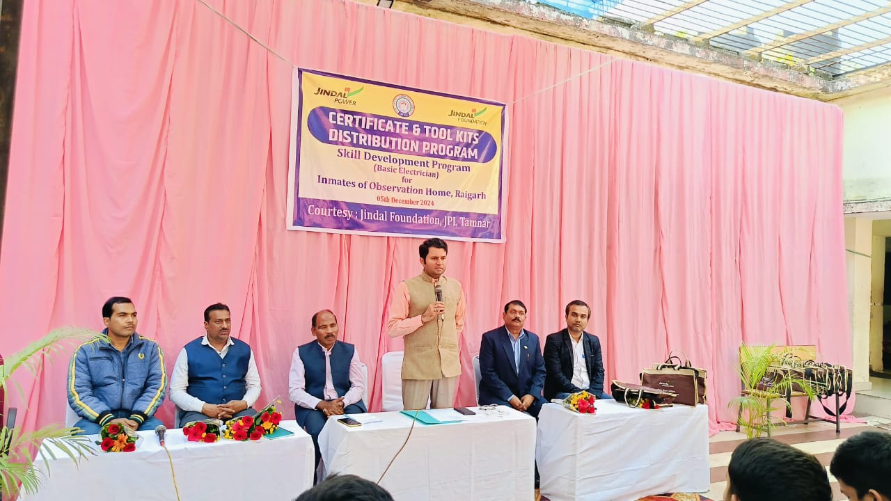 तमनार – जिंदल फाउंडेशन, जेपीएल तमनार द्वारा बाल सम्प्रेक्षण गृह रायगढ़ में 02 महीने का बेसिक इलेक्ट्रीशियन प्रशिक्षण कार्यक्रम का समापन जिला कलेक्टर रायगढ़ श्री कार्तिकेय गोयल के मुख्य आतिथ्य में 27 प्रशिक्षणार्थी को टूल किट वितरण एवं एनसीवीईटी अनुमोदित एनएसक्यूएफ संरेखित प्रमाण पत्र वितरण के साथ किया गया। बाल सम्प्रेक्षण गृह रायगढ़ में ओपी जिंदल कम्यूूनिटी कालेज पुंजीपथरा के इलेक्ट्रिशियनों द्वारा कुल 27 विचाराधीन विधि से संघर्षरत बालकों को प्रशिक्षित किया गया है। बाल सम्प्रेक्षण गृह में बेसिक इलेक्ट्रीशियन 02 माह का प्रशिक्षण कार्यक्रम का समापन कार्यक्रम जिला कलेक्टर रायगढ़ श्री कार्तिकेय गोयल के मुख्य आतिथ्य में एवं श्री लक्ष्मी पटेल, सदस्य बाल कल्याण समिति रायगढ़, श्री लक्ष्मीराम कच्छप, जिला कार्यक्रम अधिकारी, श्री ऋषिकेश शर्मा, विभागाध्यक्ष, सीएसआर जेपीएल तमनार, श्री प्रकाश ठाकुर, जिला बाल संरक्षण अधिकारी रायगढ़, श्री आलोक झा, प्राचार्य, ओपी जिंदल कम्यूूनिटी कालेज पुंजीपथरा, श्रीमती हेमपुष्पा यादव, पर्यवेक्षक अधिकारी एवं श्री शैलेश आदित्य, परामर्श दाता के गरीमामय उपस्थिति में सम्पन्न हुआ। कार्यक्रम को प्रथमतया सम्बोधित करते हुए श्री ऋषिकेश शर्मा ने कहा कि जिंदल फाउण्डेशन, जेपीएल तमनार सदैव क्षेत्र के सर्वांगीण विकास के लिए प्रतिबद्ध रही है। इसी क्रम में किशोर सुधार गृह रायगढ़ में विधि से संघर्षरत बालकों के लिए 02 महीने का बेसिक इलेक्ट्रीशियन प्रशिक्षण कार्यक्रम के पृष्ठभूमि पर विस्तृत प्रकाश डालते हुए जिला रायगढ़ के युवा कलेक्टर श्री कार्तिकेय गोयल के प्रेरणास्त्रोत उपस्थिति में सम्पन्न हो रहा है। उन्होनें ने जिला कलेक्टर रायगढ़ को भारी व्यस्तता के बावजूद पर्यापत समय प्रदान करने के लिए आभार ज्ञापित किया।वहीं कार्यक्रम के मुख्य अतिथि जिला कलेक्टर श्री कार्तिकेय गोयल ने अपने सारगर्भित सम्बोधन में 02 महीने के बेसिक इलेक्ट्रीशियन प्रशिक्षण कार्यक्रम को उपयोगी बताते हुए इसे जीवन का प्रारंभिक ज्ञान माना। उन्होनें किक्रेट के तेज गेंदों का उदाहरण प्रस्तुत करते हुए जीवन के कठिन चुनौतियों का सामना प्रबलता के साथ करने का आग्रह किया। उन्होनें कहा कि जीवन का सफर बहुत लम्बा है, जिसमें सीखने की प्रक्रिया अनवरत जारी रहनी चाहिए। बेसिक इलेक्ट्रीशियन प्रशिक्षण को अपने व परिवार के लिए रोजगार के रूप में प्रयुक्त करने का आग्रह किया। श्री गोयल ने बाल सम्प्रेक्षण गृह रायगढ़ में इस प्रकार के कौशल विकास कार्यक्रम संचालित किये जाने को सराहनीय बताते हुए जिंदल फाउंडेशन, जेपीएल तमनार को जनहितैषी योजनाओं के संचालन के लिए आभार ज्ञापित किया और आने वाले स
