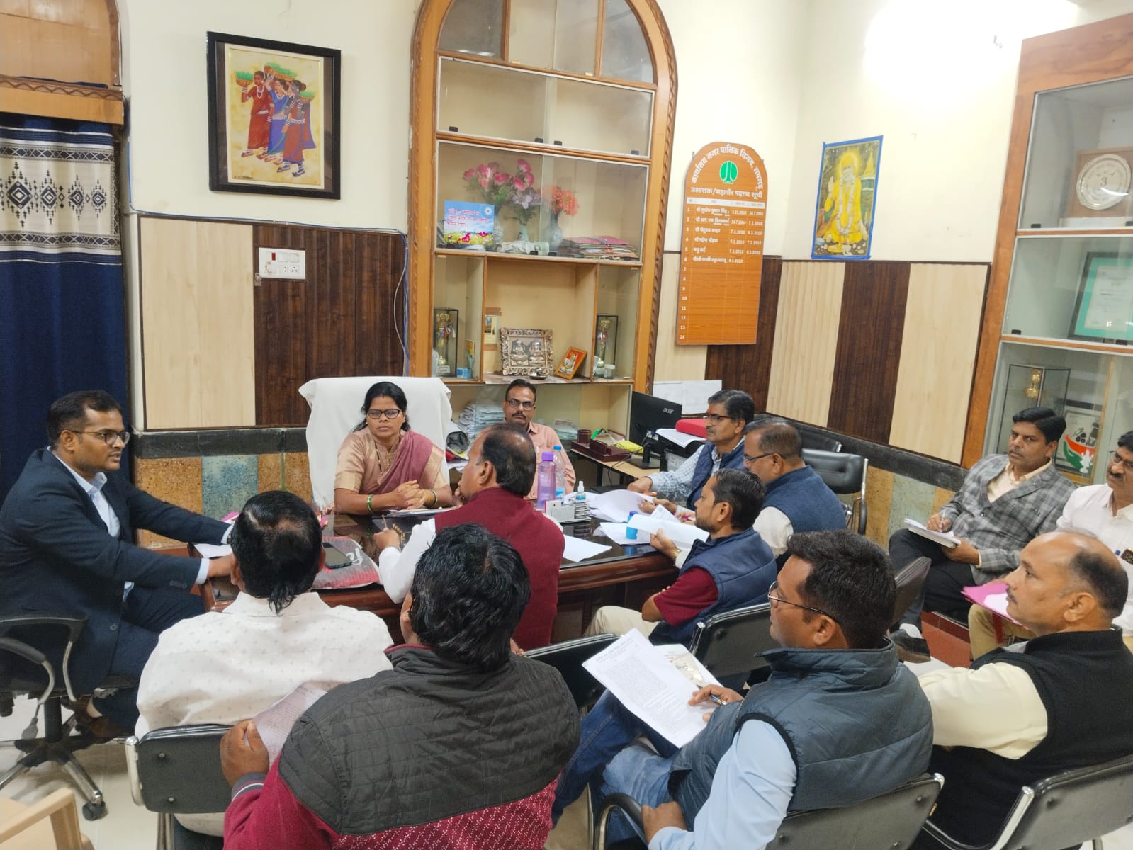 रायगढ़। सोमवार को महापौर कक्ष में मेयर इन काउंसिल (एम आई सी) की बैठक हुई। बैठक में विभिन्न एजेंडा पर चर्चा करते हुए 3 करोड़ से ज्यादा के विकास कार्य को स्वीकृति दी गई। दोपहर 3:00 से महापौर कक्ष में मेयर श्रीमती जानकी काटजू की अध्यक्षता में एमआईसी की बैठक शुरू हुई। सबसे पहले इंदिरा गांधी वृद्धा पेंशन, इंदिरा गांधी विधवा पेंशन, इंदिरा गांधी दिव्यांग पेंशन, सामाजिक सुरक्षा पेंशन, सुखद सहारा पेंशन योजना से संबंधित प्राप्त आवेदनों के एजेंडा पर चर्चा की गई। इसमें 17 पात्र आवेदकों को योजना का लाभ देने संबंधित निर्णय लिया गया। इसके बाद राष्ट्रीय परिवार सहायता योजना से संबंधित प्राप्त हितग्राहियों के आवेदनों पर चर्चा करते हुए 7 आवेदकों को योजना का लाभ देने की सहमति बनी। इसी तरह वार्ड क्रमांक 27 अतर मुड़ा से मंगल भवन तक डामरीकृत सड़क निर्माण, वार्ड क्रमांक 32 सर्वेश्वरी स्कूल से 25 एम एल डी प्लांट तक डामरीकृत सड़क निर्माण, वार्ड क्रमांक 21 सर्किट हाउस से हाउसिंग बोर्ड तक डामरीकृत सड़क निर्माण, वार्ड क्रमांक 22 हनुमान मंदिर से मुख्य मार्ग तक डामरीकृत सड़क निर्माण, वार्ड क्रमांक 4 जवाहर नगर में सड़क निर्माण कार्य, वार्ड क्रमांक 6 पहाड़ी नाला के पानी को नाले में जोड़ने संबंधित कार्य आदि पर चर्चा की गई और इन सभी एजेंडा को सर्वसम्मति से पारित किया गया। एम आई सी की बैठक में एजेंडा से संबंधित सदस्यों द्वारा किए गए सवालों के जवाब कमिश्नर श्री बृजेश सिंह क्षत्रिय ने दिए। बैठक में एमआईसी सदस्य श्री प्रभात साहू, श्री विकास ठेठवार, श्री शेख सलीम निआरिया, श्री संजय देवांगन, श्री संजय चौहान, श्री राकेश तालुकदार, श्री रथू जायसवाल एवं सभी विभाग प्रमुख अधिकारी उपस्थित थे।