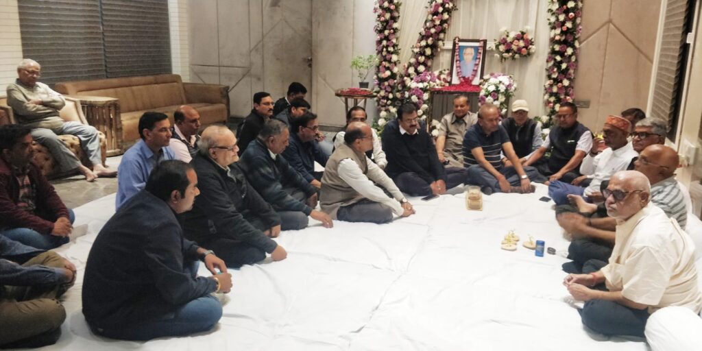 रायगढ़ ।रायगढ़ के पूर्व विधायक विजय अग्रवाल के पिता हरिराम अग्रवाल 90 वर्ष का 9 दिसंबर 2024 को स्वर्गवास हो गया था उनके निवास स्थान चैतन्य नगर कॉलोनी में मुलाकात करने व शोक संवेदना प्रकट करने रायगढ़ के चक्रधर गौशाला ट्रस्ट के सदस्यों एवं गणमान्य नागरिक, पत्रकार बंधु पहुंचे हैं। आज रायगढ़ शहर के गणमान्य नागरिक घनश्याम रतेरिया , नरेश अग्रवाल, मोहनलाल मोदी , पूनम अग्रवाल,बैद्यनाथ पैडी, महेंद्र बंसल , सुनील अग्रवाल (कुक्कू ), प्रोफेसर रामजी लाल अग्रवाल , महेश कंकरवाल , पूर्व पार्षद राज किशोर सिंह , सुशील मित्तल , बजरंग अग्रवाल, अरुण बेरिवाल, अविनाश बेरीवाल ,अग्रवाल, आलोक अग्रवाल,अनिल अग्रवाल (ट्रांसपोर्टर) , संजय अग्रवाल विनोद अग्रवाल लायंस परिवार,गौतम चौधरी, अनुपम पाल ,श्रवण साव, दीपेश सोलंकी, पूर्व पार्षद मुक्तिनाथ, विजय गुप्ता, मनीष अग्रवाल, प्रवीण शर्मा, गोपाल शर्मा खरसिया,रायगढ़ के वरिष्ठ पत्रकार नरेश शर्मा,खरसिया शहर के भाजपा कार्यकर्ता पूर्व पार्षद डा.श्रवण श्रीवानी , खरसिया के भाजपा कार्यकर्ता बंटी दिलीप केसरी, किशन अग्रवाल ने पूर्व विधायक विजय अग्रवाल के निवास स्थान चैतन्य नगर पहुंचकर पिता स्वर्गीय हरिराम अग्रवाल जी के छायाचित्र में पुष्प व माल्यार्पण कर दिवंगत आत्मा की शांति एवं शोकाकुल परिजनों को संबल प्रदान करने की प्रार्थना किये ।श्री जगदीश अग्रवाल, श्री विजय अग्रवाल (पूर्व विधायक) ,श्री अशोक अग्रवाल, श्री अजय अग्रवाल के पिता श्री हरिराम जी अग्रवाल के आकस्मिक निधन पर श्री चक्रधर गौशाला ट्रस्ट के सदस्यों ने निवास स्थान पहुंचकर अपनी शोक संवेदना पत्र देकर व्यक्त की है।हरिराम जी अग्रवाल एक मृदुभाषी, विनम्र व्यवहार कुशल स्वभाव के धनी थे। उनके निधन पर गौशाला परिवार को काफी दुख हुआ है। गौशाला परिवार के सदस्यों मे अध्यक्ष अजय कुमार रतेरिया, सचिव जयप्रकाश अग्रवाल ,उपाध्यक्ष बृजमोहन सांवड़िया, कोषाध्यक्ष सागरमल महमिया, गौ संवर्धन मंत्री विजय बापोडिया, सह सचिव बजरंग लाल अग्रवाल ,सह सचिव अरुण बेरिवाल ने पत्र में कहा है कि इस दुख की घड़ी में गौशाला परिवार दिवंगत के आत्मा के शांति के लिये प्रार्थना करता है एवं उनके समस्त परिवार को यह गहन दुख को सहने की शक्ति देने के लिये ईश्वर से प्रार्थना करता है।