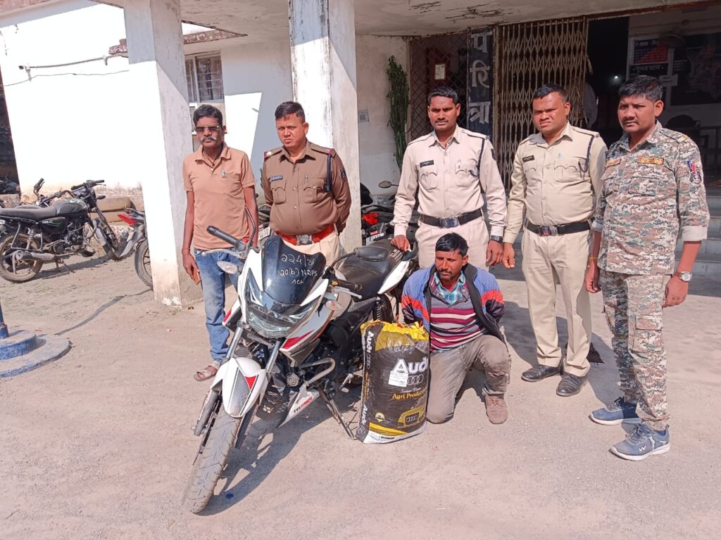 रायगढ़* । एसपी श्री दिव्यांग कुमार पटेल के नेतृत्व में जिले में मादक पदार्थ तस्करी के खिलाफ लगातार सख्त कदम उठाए जा रहे हैं। इसी क्रम में 18 दिसंबर 2024 को थाना लैलूंगा पुलिस ने एक बड़ी कार्रवाई करते हुए 10 किलो गांजा के साथ यूपी के गांजा तस्कर को गिरफ्तार किया। टीआई लैलूंगा श्री राजेश जांगड़े को मुखबिर से सूचना मिली कि एक संदिग्ध व्यक्ति बिना नंबर प्लेट वाली सफेद रंग की अपाचे मोटरसाइकिल पर ओडिशा से गांजा लेकर लैलूंगा की ओर आ रहा है। सूचना मिलते ही वरिष्ठ अधिकारियों के निर्देश पर दोपहर में पुलिस टीम ने ग्राम जमुना में अस्थाई बेरियर लगाकर नाकेबंदी की। कुछ देर बाद, मोटरसाइकिल पर सवार संदिग्ध को रोका गया। पूछताछ में उसने अपना नाम अशोक कुमार पाल (38 वर्ष), निवासी मिर्जापुर, उत्तर प्रदेश बताया। पुलिस की सख्ती पर आरोपी ने कबूल किया कि वह पेट्रोल टंकी के ऊपर रखे प्लास्टिक झोले और पीठठू बैग में अवैध गांजा छिपाकर ले जा रहा था। तलाशी के दौरान, पुलिस ने प्लास्टिक झोले और बैग में खाकी रंग के पेपर में लिपटे कुल 10 पैकेट बरामद किए, जिनमें 10 किलो गांजा था। जब्त गांजे की कीमत ₹1,00,000 आंकी गई है, जबकि मोटरसाइकिल की कीमत ₹70,000 है। इस प्रकार *कुल ₹1,70,000 की संपत्ति जब्त* की गई। आरोपी का कृत्य एनडीपीएस एक्ट की धारा 20 बी के तहत अपराध पाया गया। तत्काल मामला दर्ज कर आरोपी को न्यायिक रिमांड पर भेज दिया गया। इस महत्वपूर्ण कार्रवाई में थाना प्रभारी राजेश जांगड़े, सहायक उपनिरीक्षक चंदन सिंह नेताम, खेमराज पटेल, प्रधान आरक्षक सुमेश गोस्वामी, आरक्षक सुरेश मिंज, आरक्षक अरुण एक्का और सुखदेव साय की सराहनीय भूमिका रही। मादक पदार्थों की तस्करी के खिलाफ सख्त कार्रवाई आगे भी जारी रहेगी ।