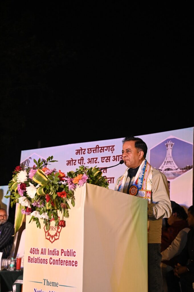 रायपुर, पीआरएसआई द्वारा आयोजित तीन दिवसीय 46वें ऑल इंडिया पब्लिक रिलेशंस नेशनल कॉन्फ्रेंस 2024 के समापन में मुख्य अतिथि के तौर पर उपमुख्यमंत्री श्री अरुण साव शामिल हुए। समापन सत्र को संबोधित करते हुए उन्होंने कहा कि यह छत्तीसगढ़ के लिए सौभाग्य की बात है कि पीआरएसआई ने अपने 46वें अधिवेशन के लिए छत्तीसगढ़ को चुना। मैं देशभर से आए प्रतिनिधियों का छत्तीसगढ़ की पावन भूमि और माता कौशल्या की इस धरती पर हार्दिक अभिनंदन और स्वागत करता हूं।