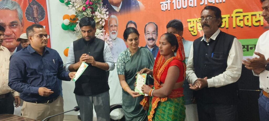 रायगढ़, पूर्व प्रधानमंत्री, भारत रत्न स्वर्गीय श्री अटल बिहारी वाजपेयी जी की 100 वीं जयंती के अवसर पर आज कलेक्टोरेट के सृजन सभाकक्ष में सुशासन दिवस का आयोजन किया गया। इस अवसर पर विभिन्न विभागों के द्वारा पात्र हितग्राहियों को योजनाओं से लाभान्वित किया गया। इस अवसर पर नेता प्रतिपक्ष नगर निगम श्रीमती पूनम सोलंकी, उप नेता प्रतिपक्ष नगर निगम श्री शीनू राव, श्री सुभाष पाण्डेय, श्री शैलेश माली, श्री सुजीत लहरे, सीईओ जिला श्री जितेन्द्र यादव, आयुक्त नगर निगम श्री बृजेश सिंह क्षत्रिय, श्री महेश पटेल सहित स्थानीय जनप्रतिनिधि एवं विभागीय अधिकारी-कर्मचारी उपस्थित रहे। नेता प्रतिपक्ष नगर निगम श्रीमती पूनम सोलंकी ने कहा कि राज्य शासन के निर्देशन में अटल बिहारी वाजपेयी के जयंती के अवसर पर आज सुशासन दिवस का आयोजन किया जा रहा है। श्री अटल बिहारी वाजपेयी राष्ट्र चेतना के लोकप्रिय कवि, पत्रकार, प्रखर वक्ता एवं राजनेता थे। जिन्होंने देश के विकास की रुपरेखा की तय की। सीईओ जिला पंचायत श्री जितेन्द्र यादव ने कहा कि प्रदेश के साथ ही जिले में सुशासन सप्ताह का आयोजन किया गया। पूर्व प्रधानमंत्री, भारत रत्न श्री अटल बिहारी वाजपेयी जी की दूरगामी सोच थी कि कि शासन और जनता बीच की दूरी कम हो, उनके सपनों का परिणाम है कि आज प्रधानमंत्री ग्रामीण सड़क योजना के माध्यम से गांव-गांव की सड़कों को पक्की सड़कों के रूप में तब्दील कर मुख्य मार्गो से जोडऩे का कार्य किया जा रहा है जो सुशासन का एक महत्वपूर्ण कदम है। उनके प्रयास से परमाणु परीक्षण कर आज भारत विश्व पटल पर परमाणु समृद्ध देश पंक्ति में मजबूती के साथ खड़ी है। श्री वाजपेयी जी किसी भी कार्य को सोचने के साथ धरातल में उतारने और हकीकत में बदलने से डरते नहीं थे। आज पीएम आवास, आयुष्मान कार्ड, स्वच्छ भारत मिशन के तहत व्यक्तिगत शौचालय जैसी योजनाएं इसी का परिणाम है। हम पिछले सप्ताह सुशासन सप्ताह के माध्यम से जिले के सभी अधिकारियों को आवास के साथ ही विभिन्न कार्यों का निरीक्षण किया गया। उन्होंने कहा कि सुशासन का तात्पर्य ही शासन का जनता तक पहुंचना और इसमें सभी की समान भागीदारी सुनिश्चित करना है। उन्होंने सभी लोगों से शासन की योजनाओं का अधिक से अधिक लाभ उठाने की अपील की। आयुक्त नगर निगम श्री बृजेश सिंह क्षत्रिय ने कहा कि आज सुशासन दिवस का आयोजन किया जा रहा है। जिसका उद्देश्य शासन की योजनाओं से अंतिम व्यक्ति को लाभान्वित करने के साथ ही योजनाओं की जानकारी प्रदान करना है।*सुशासन दिवस पर पात्र हितग्राहियों को किया गया शासकीय योजनाओं से लाभान्वित*आयुक्त नगर निगम श्री बृजेश सिंह क्षत्रिय ने बताया कि सुशासन दिवस के अवसर पर पात्र लोगों को हितग्राही मूलक योजनाओं स
