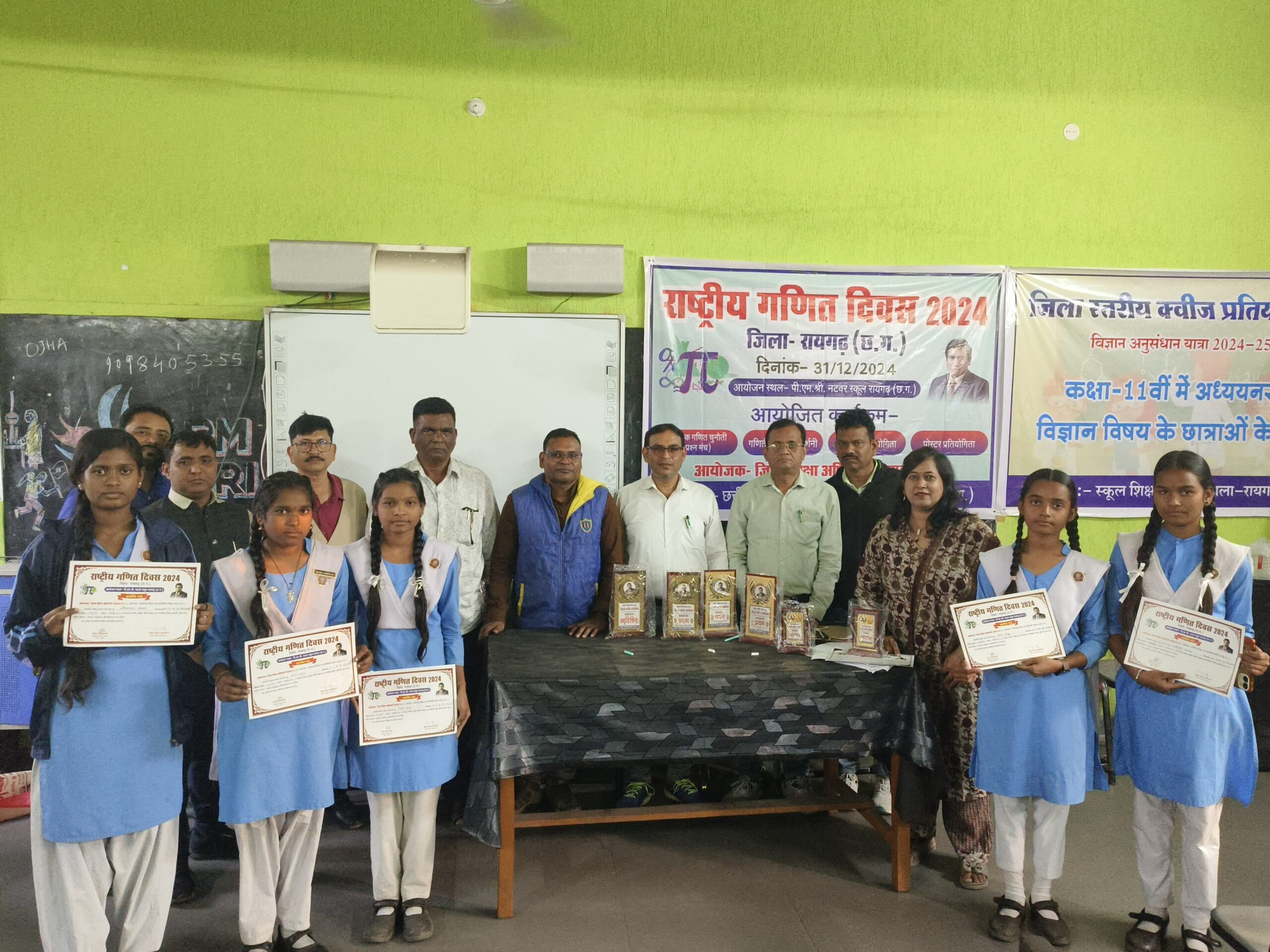 रायगढ़। छत्तीसगढ़ विज्ञान एवं प्रौद्योगिकी परिषद रायपुर के निर्देशन में एवं रायगढ़ जिला शिक्षा अधिकारी डॉक्टर के वी राव,सहायक संचालक शिक्षा वर्षा शर्मा,एडीपीओ आलोक स्वर्णकार के मार्गदर्शन में पीएम श्री नटवर स्कूल रायगढ़ में श्रीनिवास रामानुजन की जन्म जयंती के अवसर पर जिला स्तरीय राष्ट्रीय गणित दिवस का कार्यक्रम आयोजन किया गया, जिसमें जिले के सात विकासखंडों कि विद्यार्थियों ने बढ़-चढ़कर हिस्सा लिया। कार्यक्रम की शुरुआत मां सरस्वती की प्रतिमा पर दीप प्रज्वलित कर की गई कार्यक्रम में उपस्थित सभी अतिथियों का पुष्प गुच्छ से स्वागत किया गया ,जिला समन्वयक राष्ट्रीय बाल विज्ञान कांग्रेस जिला रायगढ़ कमलेश पटेल द्वारा राष्ट्रीय गणित दिवस कार्यक्रम में आयोजित गणित मॉडल,प्रश्न मंच,पोस्टर आदि विधाओं के बारे में विस्तृत जानकारी दी गई। सहायक संचालक शिक्षा वर्षा शर्मा ने विद्यार्थियों को गणित में रुचि पैदा करने हेतु प्रोत्साहित किया,एडीपीओ आलोक स्वर्णकार ने अपने उद्बोधन में विद्यार्थियों को अपने जीवन का उदाहरण देते हुए, गणित के डर को दूर निकालने के , विस्तृत जानकारी दें और कहा गणित जीवन में बहुत उपयोगी है, इसमें रुचि रखकर अध्ययन करना चाहिए। सहायक विकासखंड शिक्षा अधिकारी डीपी पटेल ने कहा गणित हमारे मन में तार्किक सोच को विकसित करता है, श्लोक के माध्यम से गणित को सभी विषयों का राजा बताते हुए कहा जिस छात्र का गणित अच्छा है, उसके सभी विषय अच्छे होंगे। वरिष्ठ व्याख्याता,एस जी ओझा ने विद्यार्थियों को गणित के महत्वपूर्ण ट्रिक बताते हुए बहुत ही आसान तरीके से गणित को कैसे पढ़ना है ,इसकी जानकारी दी, वरिष्ठ व्याख्याता गोपाल कृष्ण त्रिपाठी ने कहा गणित के बिना हम कुछ नहीं कर सकते मनोरंजन से लेकर हर चीज में गणित का उपयोग किया गया गणित के बिना जीवन संभव नहीं है इस पर जोर दिया।दिया गया। सभी निर्णायकों द्वारा विद्यार्थियों की मॉडल पोस्टर आदि का अवलोकन किया गया, प्रथम एवं द्वितीय स्थान प्राप्त करने वाले विद्यार्थियों को स्मृति चिन्ह एवं प्रशस्ति पत्र से प्रोत्साहित किया एवं सभी प्रतिभागी विद्यार्थियों को प्रमाण पत्र प्रदाय किया गया । मानसिक गणित चुनौती विधा में पोस्टर प्रदर्शनी में प्रथम स्थान शुभम यादव सेजेस राजपुर विकास खंड लैलूंगा एवं द्वितीय स्थान तुलसी गुप्ता सेजेस तारपाली ,गणित मॉडल प्रतियोगिता में प्रथम अविनाश साहू और लक्की पटेल सेजेस महापल्ली तथा द्वितीय दिशा प्रधान और अंशिका गुप्ता सेजेस लोइंग इसी प्रकार गणित प्रश्न मंच में प्रथम दयाशंकर कुराल और बलराम प्रधान सेजेस राजपुर विकास खंड लैलूंगा द्वितीय बालाजी कुमार और वतन सदावर्ती सेजेस लोइंग ने प्राप्त किया ।सभी 