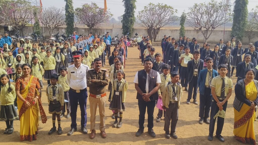 रायगढ़* ।  पुलिस अधीक्षक श्री दिव्यांग कुमार पटेल के दिशा-निर्देशन और अतिरिक्त पुलिस अधीक्षक श्री आकाश मरकाम के मार्गदर्शन में आज यातायात पुलिस ने राइजिंग किड्स हायर सेकेंडरी स्कूल, कुसमुरा में एक विशेष जागरूकता कार्यक्रम का आयोजन किया।