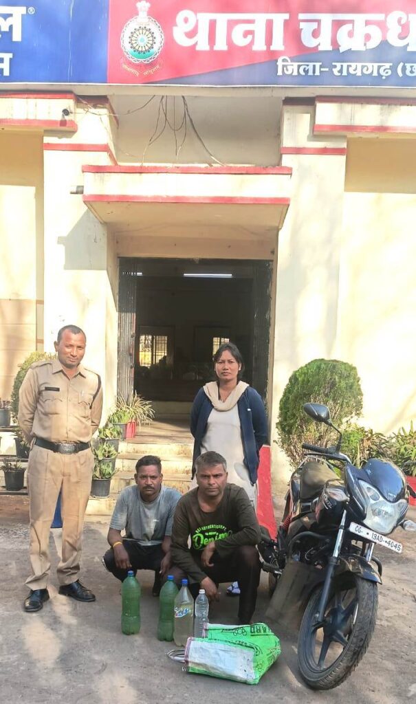 चक्रधरनगर पुलिस की शराब रेड कार्रवाई: मोटर सायकल पर महुआ शराब तस्करी कर रहे दो आरोपी गिरफ्तार