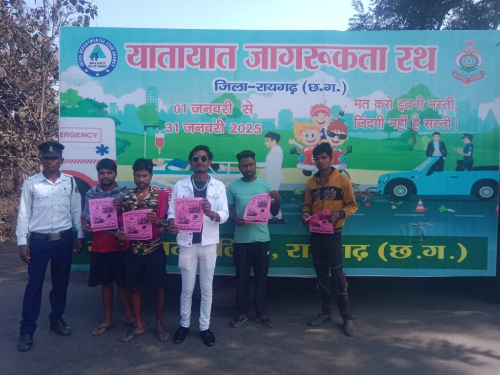 राष्ट्रीय सड़क सुरक्षा माह 2025: रायगढ़ यातायात पुलिस ने जागरूकता रथ के माध्यम से किया जन-जागरण