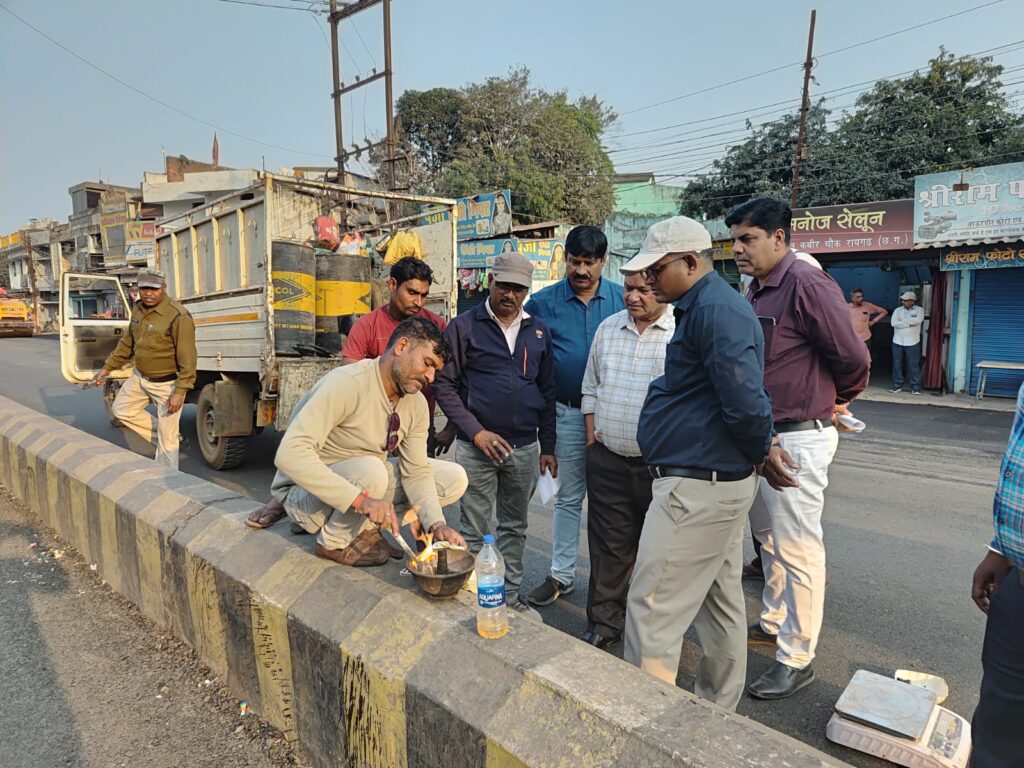 रायगढ़। रायगढ़ में नगरीय क्षेत्र में जनसामान्य को राहत दिलाने एवं यातायात सुगम बनाने शहर के विभिन्न क्षेत्र में बीटी सड़कों निर्माण किया जा रहा है। जिसका आज आयुक्त नगर निगम श्री बृजेश सिंह क्षत्रिय ने निरीक्षण किया। निरीक्षण के दौरान उन्होंने आज निगम क्षेत्र के सत्तीगुड़ी चौक से कोतरा रोड , निगम कार्यालय से छतमुड़ा चौक तक एवं गोगा राइस मिल तक विभिन्न सड़कों का निरीक्षण किया । उन्होंने मौके पर सड़क निर्माण की गुणवत्ता एवं डामर के तापमान एवं उसकी मात्रा की जांच किए। उन्होंने गुणवत्ता एवं तय समय सीमा का विशेष ध्यान देने के निर्देश दिए। उल्लेखनीय है कि निगम अंतर्गत जर्जर सड़को की मरम्मत एवं निर्माण से लोगों का आवागमन सुलभ होगा और यातायात सुगम होगा। जिसके तहत शहर के गोगाराइस मिल के पास निर्माणाधीन बीटी रोड निर्माण कार्य प्रगति पर है। जिसमें 9 विभिन्न स्थानों के बीटी रोड शामिल है।