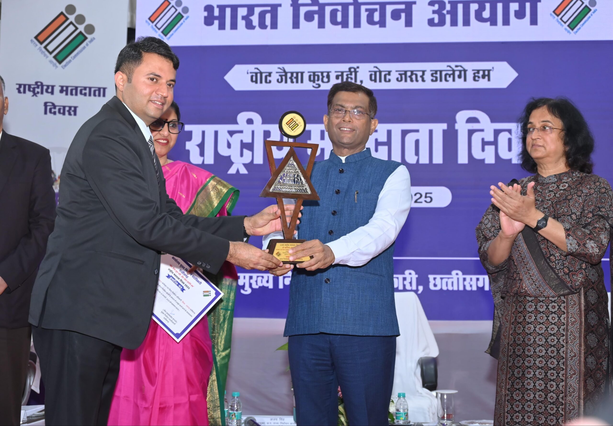 राष्ट्रीय मतदाता दिवस पर टीम रायगढ़ राज्य स्तर पर हुई पुरुस्कृत