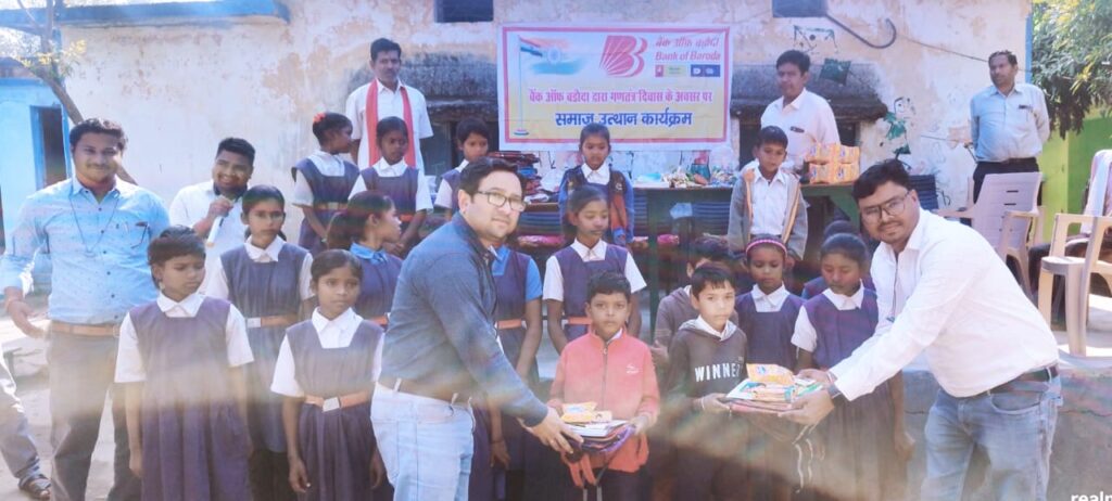 रायगढ़: 26 जनवरी को पूरे भारतवर्ष में गणतंत्र दिवस पूरे जोश व हर्षोल्लास के साथ मनाया गया। बैंक आफ बड़ौदा हांडी चौक रायगढ शाखा ने अपना गणतंत्र दिवस सरकारी स्कूल के बच्चों को आवश्यक पाठ्य सामग्री बांटकर मनाया। देश के दूसरे सबसे बड़े राष्ट्रीयकृत बैंक, बैंक आफ बड़ौदा अपने ग्राहक सेवा के साथ सामाजिक उत्थान के कार्यक्रम में सक्रिय रहती है। 20 जुलाई 1908 को राजा साइयाजीराव गायकवाड तृतीय ने बैंक आफ बड़ौदा की नीव रखा था। तब से लेकर आज तक यह बैंक अपनी ग्राहक सेवा के अलावा सामाजिक उत्थान गतिविधि में भी अपनी अहम भूमिका निभाती है। गणतंत्र दिवस के अवसर पर बैंक आफ बड़ौदा, हांडी चौक रायगढ़ शाखा के अधिकारियों ने सुदूर ग्राम मेडरा, तहसील बरमकेला के शासकीय प्राथमिक शाला व माध्यमिक शाला के बच्चों को स्कूल बैग व आवश्यक पाठ्य सामाग्री और खाद्य सामग्री वितरित किया। बरमकेला से लगभग 7 किलोमीटर की दूरी पर स्थित ग्राम मेडरा के शासकीय प्राथमिक शाला के बच्चे अत्यंत प्रतिभावान व ऊर्जावान हैं, ऐसे में मूलभूत आवश्यक सुविधाओं के अभाव में बच्चों को संघर्ष करना पड़ता है। बच्चों को इस प्रकार के आवश्यक पाठ्य सामाग्री प्रदान करने पर उनकी मनोबल में वृद्धि होती है और उनके अंदर छुपे अमूल्य प्रतिभा को निखारा जा सकता है। बैंक आफ बड़ौदा से आए वरिष्ठ शाखा प्रबन्धक महोदय प्रोसेन जीत अधिकारी बच्चों के प्रतिभा व लगन को देख कर मंत्र मुग्ध हो गए व उन्होने कहा कि सरकारी स्कूल के बच्चे मध्यम व निम्न वर्ग से आते हैं। इन बच्चों के पास मूलभूत सुविधाओं का अभाव रहता है, जिससे इनके अध्ययन कार्य प्रभावित होती है। इन बच्चों को जरूरत मंद सामानों की प्रतिपूर्ति कर हमारा बैंक इनके प्रगति पथ पर इनका सहायक बनना चाहती है। बैंक के अन्य सदस्य सुंदर लाल पटेल जी ने बच्चों को पढ़ाई के साथ साथ खेल, गीत, संगीत व अन्य क्षेत्र में भी जरूर शामिल होने के लिए आह्वान किया। इससे बच्चों के शारीरिक व मानसिक विकास होता है। प्राथमिक शाला मेडरा के प्रधान पाठक महजूद दीपक जी ने कहा कि अच्छे तन में ही अच्छे मन का वास होता है। सभी बच्चों को दीपक जी ने अपने शरीर को हमेशा स्वस्थ और तंदरूस्त रखने के गुर बताए। स्कूल के बच्चों के अंदर छुपे प्रतिभा को निखारने के काम में मुख्य भूमिका शाला प्रबंधन का रहता है, जिसमें राज्यपाल पुरस्कार से सम्मानित प्रधान पाठक अनुराज वर्मा, अपने गणितीय गतिविधियों से बच्चों को खेल खेल में ही कठिन सवालों को हल करने का गुर सिखाने के बारे में बताया। शासकीय प्राथमिक शाला बम्हनिपाली के अध्यापक दुर्योधन खम्हारी ने बच्चों को अन्य सांस्कृतिक गतिविधियों में भी सक्रिय भूमिका निभाने के लिए प्रेरित किया। सहायक शिक्षक फेडरेशन के कार्यकारी 