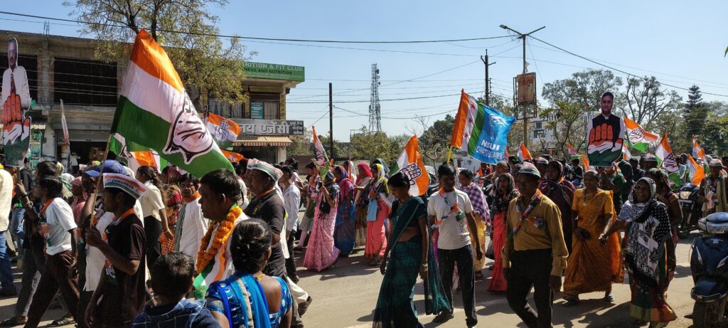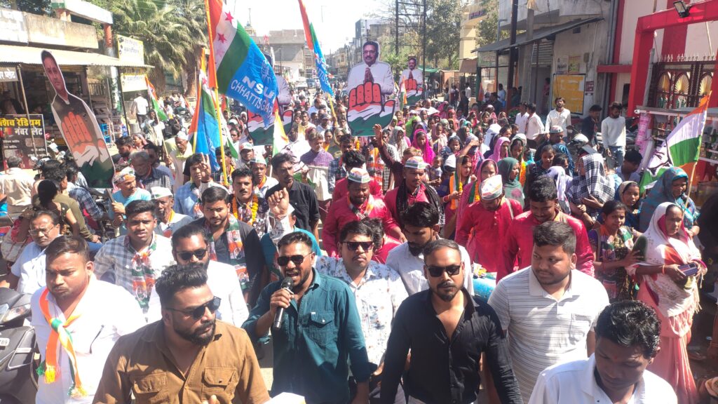 खरसिया, नगर पालिका चुनाव के लिए नामांकन भरने के अंतिम दिन कांग्रेस ने खरसिया में विशाल रैली निकाली, जिसका नेतृत्व पूर्व मंत्री एवं खरसिया विधायक उमेश पटेल ने किया। रैली की शुरुआत गांधी चौक से महात्मा गांधी की प्रतिमा पर माल्यार्पण के साथ हुई, जहां कांग्रेस कार्यकर्ताओं और नेताओं का जोश देखते ही बना।*नंदू भैया के स्मारक स्थल पर उमड़ा जनसैलाब*गांधी चौक से निकली यह रैली जब शहीद नंदकुमार पटेल स्मारक स्थल पहुंची, तो वहां जनसैलाब उमड़ पड़ा। उमेश पटेल ने सैकड़ों कार्यकर्ताओं और समर्थकों को संबोधित करते हुए कहा, “विपक्ष में रहते हुए भी हमने जनता की सेवा को प्राथमिकता दी है। अब आपके आशीर्वाद से नगर पालिका में कांग्रेस की सरकार बनाकर विकास को नई गति देंगे। जिस तरह मेरे पिता स्वर्गीय शहीद नंदकुमार पटेल को अपार जनसमर्थन मिला था, उसी तरह इस बार भी आपका आशीर्वाद चाहिए।*अध्यक्ष और पार्षद प्रत्याशियों ने रखा अपना विजन*इस मौके पर कांग्रेस के अध्यक्ष पद के प्रत्याशी रमेश अग्रवाल और सभी पार्षद प्रत्याशियों ने अपने विजन को जनता के सामने रखा और खरसिया के विकास के लिए समर्थन मांगा। उन्होंने आश्वासन दिया कि कांग्रेस नगर के विकास के लिए पूरी तरह प्रतिबद्ध है और जनता के विश्वास को कभी टूटने नहीं देगी।*जोशपूर्ण नारेबाजी के बीच प्रत्याशियों ने दाखिल किया नामांकन*रैली के दौरान कार्यकर्ताओं ने “कांग्रेस पार्टी जिंदाबाद” और “उमेश नंदकुमार पटेल जिंदाबाद” के नारे लगाए, जिससे पूरा नगर कांग्रेसमय हो गया। तत्पश्चात, उमेश पटेल के नेतृत्व में अध्यक्ष पद के प्रत्याशी रमेश अग्रवाल और सभी 18 वार्डों के पार्षद प्रत्याशियों ने तहसील कार्यालय पहुंचकर नामांकन दाखिल किया।