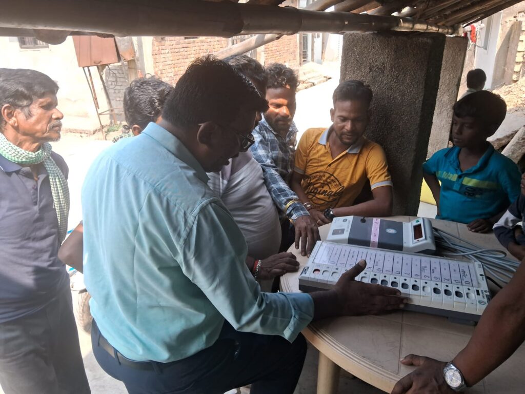 रायगढ़, कलेक्टर एवं जिला निर्वाचन अधिकारी श्री कार्तिकेया गोयल के निर्देशन में नगरीय निकाय निर्वाचन-2025 के तहत रायगढ़ नगर निगम सहित समस्त नगरीय निकायों में ईवीएम जागरूकता कार्यक्रम का आयोजन किया जा रहा है। जो आगामी 9 फरवरी 2025 तक चलेगा। जिसमें प्रतिदिन प्रात: 10 बजे से शाम 5.30 बजे तक नागरिकों को ईवीएम (इलेक्ट्रॉनिक वोटिंग मशीन) की जानकारी दी जा रही है। ईवीएम जागरूकता अभियान के तहत रायगढ़ नगर निगम, नगर पालिका परिषद सहित सभी नगर पंचायतों के विभिन्न वार्डों में प्रशिक्षित अधिकारियों द्वारा ईवीएम डेमो का प्रदर्शन किया जा रहा है, ताकि जनसामान्य मतदान प्रक्रिया की बारीकियों से अवगत हो सके। ईवीएम डेमो प्रदर्शन का मुख्य उद्देश्य निर्वाचन प्रक्रिया को पारदर्शी और सुगम बनाना है। जिससे मतदाता निर्भीक और सटीक मतदान कर सकें।