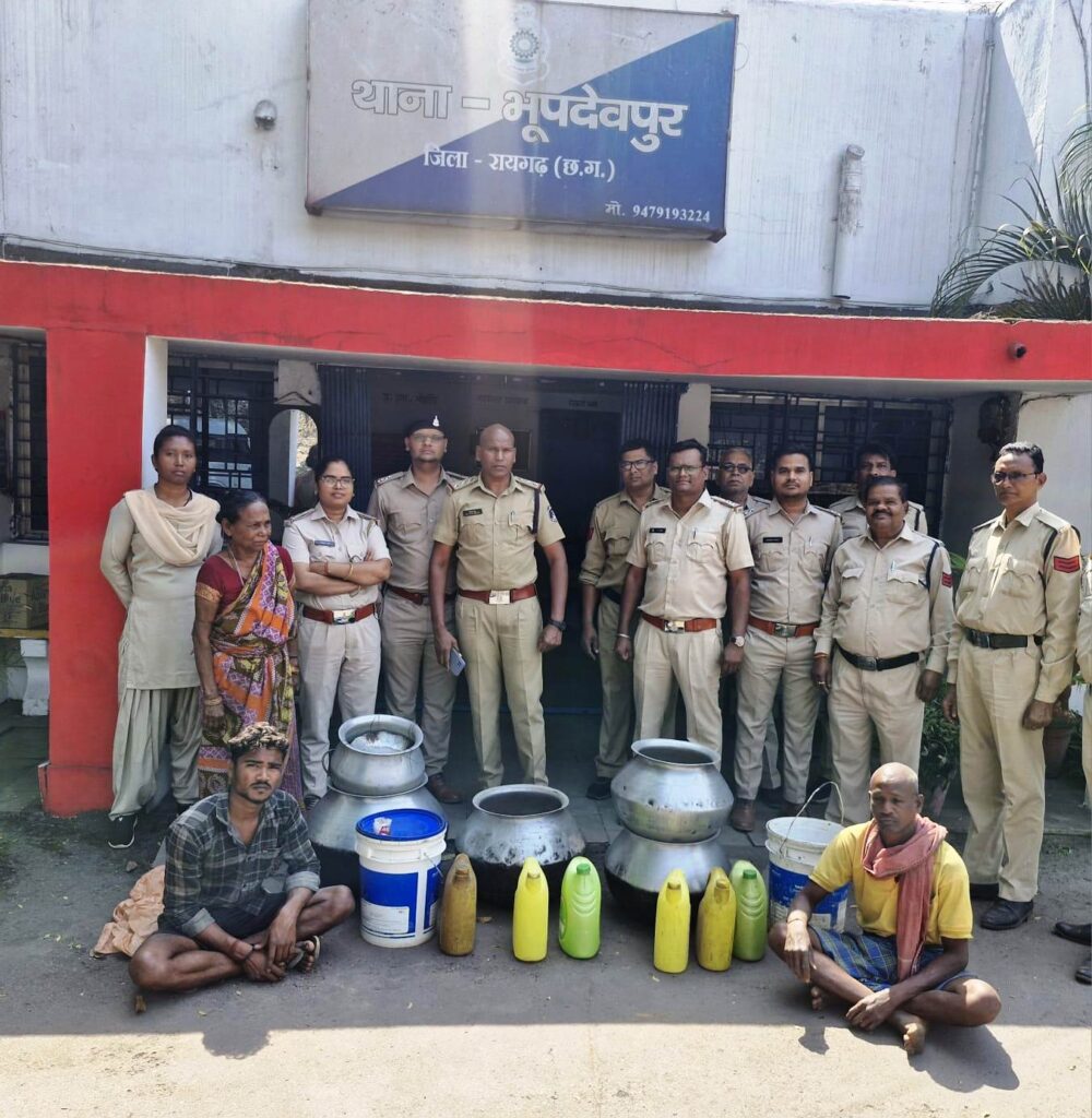 रायगढ़। कल भूपदेवपुर पुलिस और आबकारी विभाग की संयुक्त टीम ने ग्राम गुढकुर्री और बिलासपुर में अवैध शराब निर्माण और बिक्री के खिलाफ सख्त कार्रवाई करते हुए चार आरोपियों को गिरफ्तार किया है। पुलिस ने छापेमारी के दौरान बड़ी मात्रा में महुआ शराब और अंग्रेजी शराब जब्त की।