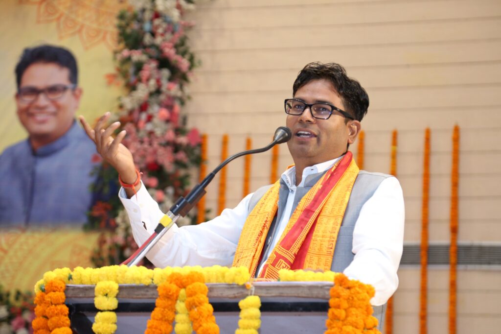 शपथ ग्रहण में जीवर्धन द्वारा राधे-राधे का गमछा पहनाया जाना चर्चा का विषय