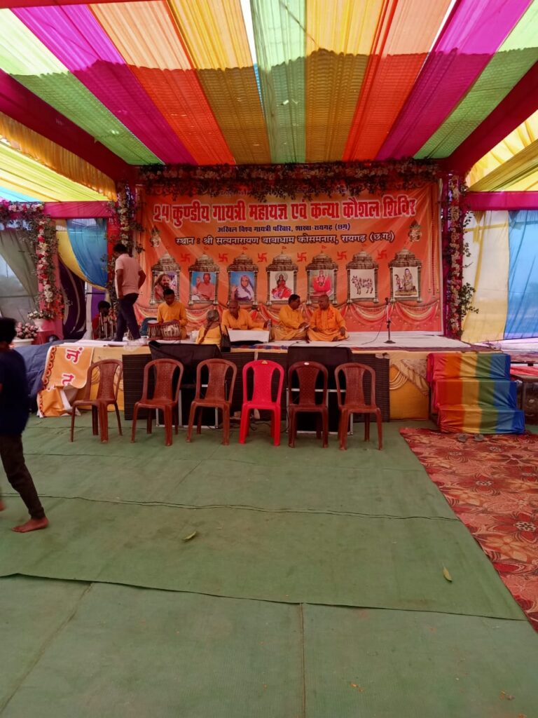 विदित हो कि अखिल विश्व गायत्री परिवार शांतिकुंज हरिद्वार के मार्गदर्शन में नैतिक, बौद्धिक एवं सांस्कृतिक पुनरुत्थान का एक रचनात्मक अभियान मनुष्य में देवत्व का उदय व धरती पर स्वर्गीय वातावरण हेतु परम पूज्य गुरुदेव पं. श्री राम शर्मा आचार्य, परम वंदनीया माता भगवती देवी शर्मा के सूक्ष्म संरक्षण व श्री सत्यनारायण बाबा जी के आशीर्वाद से बाबाधाम कोसमनारा रायगढ़ में 24 कुंडीय गायत्री महायज्ञ एवं कन्या कौशल शिविर, आदर्श विवाह (मुख्यमंत्री कन्या विवाह 76 जोड़ों) का कार्यक्रम संपन्न होने जा रहा है। अतः ऋषियों द्वारा दी गई सनातन धर्म संस्कृति एवं संस्कार परंपरा को पुनः जागृत करने में अखिल विश्वगायत्री परिवार आप सभी का आह्वान करता है कि समाज व राष्ट्र को उंचा उठाने इस दैवीय प्रयोजन में अपना सक्रिय योगदान देकर श्रेय व पुण्य के भागीदार बनने की अपील करता है। कार्यक्रम की रूपरेखा अंतर्गत दिनांक 21 मार्च 2025 शुक्रवार सायं 3 बजे से कलश यात्रा, कलश पूजन, आरती दिनांक 22 मार्च 2025 शनिवार प्रातः 8 से 12 बजे गायत्री महायज्ञ, सायं 4 से 8 संगीतमय प्रज्ञा पुराण कथा, रात्रि 8 बजे से कवि सम्मेलन (आध्यात्मिक) दिनांक 23 मार्च 2025 रविवार प्रातः योग जप 8 बजे से 12 बजे यज्ञ एवं विभिन्न संस्कार दोपहर 12 बजे से आदर्श विवाह, सायं 4 से 8 बजे संगीतमय प्रज्ञा पुराण कथा, दीप महायज्ञ पश्चात रामचरित मानस पाठ दिनांक 24 मार्च 2025 सोमवार प्रातः 8 से 1 बजे तक यज्ञ एवं विभिन्न संस्कार, पूर्णाहुति, देव विदाई, शाांति अभिसिंचन । •कन्या कौशल शिविर- 22 मार्च : प्रातः योग जप, 9 बजे दीप प्रज्जवलन शिविर शुभारंभ 23 मार्च : सायं 6 बजे शिविर समापन, पुरस्कार वितरण, शांति पाठ करते हुए 24 कुंडीय गायत्री महायज्ञ को समापन किया जाएगा।